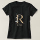 Letter R monogram floral. Letter R in golden brown texture accented with green watercolor compound leaves, flower blossoms and gold dust. Personalised with name in matching font.