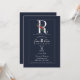 R Monogram Last Initial Modern Blue Floral Wedding Invitation