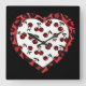RAB Rockabilly Cherries Leopard Print Heart Square Wall Clock