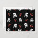 RAB Rockabilly Skulls and Cherries on Black Postcard