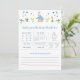 The Rabbit baby shower predictions and advice game design features a white background with watercolor Rabbit with elements from the garden, "baby predictions + advice" in a fancy serif in blue, the wording "advice for the parents to be" in a blue font. This baby predictions & advice game template is the perfect choice for a Rabbit baby shower game.