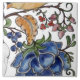 A fantasy mural for your decor, with a tan bunny rabbit, birds and Jacobean-inspired colourful flowers! The background is white. This tile mural consists of eight tiles, available in 4 1/4" and 6" sizes. The assembled mural in 4 1/4" tile measures 8 1/2" x 13" plus grout lines. The assembled mural with 6" tile measures 12" x 18" plus grout lines. This piece is right side, row 2. Tiles are sold individually. Use a non-sanded grout and avoid scrubbing with abrasives. Original artwork & design by Tuzi Williams.