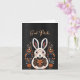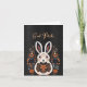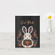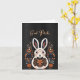Scandinavian white, orange and blue rabbit on a black background wishing someone God Påske.