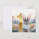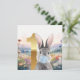 Rabbit blowing blue bubble gum First birthday Card