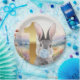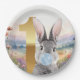 Rabbit blowing blue bubble gum First birthday Paper Plate