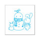 Cute cartoon rabbit is about to give a snowman a carrot nose. The snowman is already sporting a lovely knitted scarf. A tiny bunny-shaped snowman and a bird complete the picture.