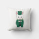 Do you like cute pillows? This throw pillow features an adorable white bunny rabbit wearing a green and gold marching band uniform while playing the clarinet.