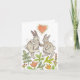 Two rabbits jump in joyful congratulations to the card recipient. The original artwork was handmade by Sue Clancy using ink and gouache.