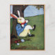 A white rabbit sits down beneath a tree to eat some nice carrots and turnips fresh from the garden in this vintage illustration from a 1916 children's book.