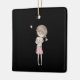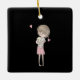 Rabbit Gift |Cute Little Girl & Bunny Rabbit Pink Ceramic Ornament
