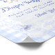 My thoughts on this product was excellent. Well printed in a gloss finishing and just the size l ordered. It arrived in good condition and am overall satisfied with the product. The printing turned out great. I was quite surprised with the finishing touch to the poster. The semi gloss was just right and a perfect size to display at the wedding.