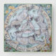 My original, copyrighted rabbit tile mural is an adaptation of an ancient design, three rabbits sharing three ears. The traditional poem in the circular border reads, "Rabbits three and ears as few, yet each rabbit has its two." Each corner is decorated with a seasonal flower painting. The numbers are unobtrusive in dark gray.