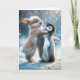 Rabbit Hugging a Penguin Holiday Card