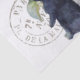 Three rabbits with blue hydrangea flowers with French "carte postale" text, postmark and cancellation mark in the background. Great for decoupage and Easter crafts.