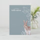 Cute rabbit illustration with line art eucalyptus leaves custom name note card. Customisable!