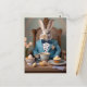 Rabbit in a blue coat and bow tie postcard