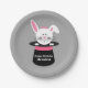 Birthday party plates featuring an illustration of a rabbit wearing a pink bow and peeking out of a top hat.