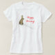 Cute rabbit with tracks in the snow festive winter t-shirt. Personalise with your own greeting or words currently reads Happy Holidays.