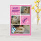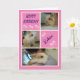 Bunny lover's pink customisable birthday greeting card with three photo collage and name.