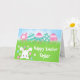 Rabbit Pink and Turquoise Blue Eggs Happy Easter Card