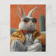 A rabbit sits on a couch wearing a striped outfit and a yellow jacket fantasy art