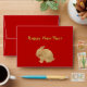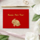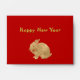 Red Chinese New Year money envelope with graphics of a red and gold floral pattern, on the inside. Gold tone graphics of a rabbit decorates the front of the envelope, and gold tone graphic text reads Happy New Year. Customise this envelope if you wish to add any text.