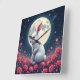 A cute rabbit sitting in a pink flower field under the dreamy moonlight, the delicate details create a warm and comfortable feeling.
