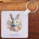 Rabbit Surrounded by Pastel Flowers Cute Key Ring