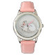 Picture of a rabbit on a pink watch.