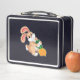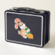 This is a standard metal lunchbox that appears to work just fine. We designed this box ourselves with an uploaded photo and custom text on the front and back. It looks absolutely beautiful except the front of the lunchbox is not centered like it shows in the photo. The print borders don't align with the inset flat part of the box where the preview photo online showed it perfectly centered in there. The back looks nice and centered though.