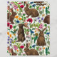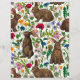 Hand-drawn rabbits and woodland flora,ferns mushrooms and beriies and bugs