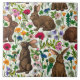 Hand-drawn rabbits and woodland flora, ferns mushrooms and beriies and bugs
