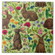 Rabbits and wildflowers on honeydew green ceramic tile