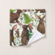 Hand-drawn rabbits and woodland flora= ferns mushrooms and beriies and bugs