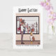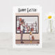 A greeting card with a cute and funny cartoon about a chicken identifying an Easter egg thief from a line up of several rabbits. Original artwork by DBcartoons. The background and image can be personalised.