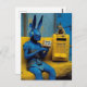 Weird and wacky AI generated art in shades of blue and yellow rabbits in an abandoned factory