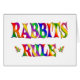 A rabbit lover can show their love for rabbits with this colourful design saying - Rabbits Rule. Makes a great gift.