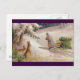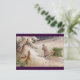 Rabbits Watch Santa in Purple Coat Pull Sled Holiday Postcard