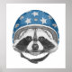 This design features a cute raccoon wearing a vintage motorcycle helmet.