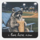 Raccoon I Live Here Now Shirt Raccoon Drinking Ice Square Sticker