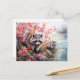 Raccoons near autumn pond scene holiday postcard