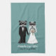 Raccoons Wedding Bride and Groom with Custom Text Tea Towel