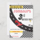 Race on over and celebrate with this high-energy, editable race car third birthday invitation! Designed with bold colours, chequered flags, and a speedy red car, this template is perfect for your little one’s big day.