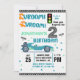 Rev up the excitement with this editable Race Car Birthday Invitation! Featuring the fun phrase “Vroom… Vrooom Start Your Engines For”, bold tire tracks, and a cool racing car in black, blue, and green, this invitation is perfect for boys ages 2 to 10. Easily customize the child’s name, age, date, time, and party details. Ideal for racing lovers and high-speed birthday themes!