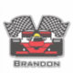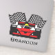Race Car Design Contour Sticker with optional text, available in various sizes.
