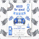 Birthday Party. Invite guests to a birthday party in style with car race. Watercolor racing track, gas station, race flag, blue racing car.