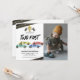 Get ready to start your engines for an unforgettable 2nd birthday celebration! Our racing car-themed invitations are designed to kick-start the fun. With a child-centric photo, playful watercolor race cars, roads, and chequered flags surrounding the trophy, it's the perfect invite for your little racer. Plus, it's easy to customise to add that special touch. Hurry, these unique invitations are racing off the shelves!