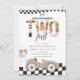 Vintage Race Car 2nd Birthday Invitation, Boy Beige Race Car Two Fast Second Birthday Invite with Photo