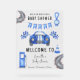 Race car theme baby shower invitation card featuring watercolor illustrations of a BLUE RACE CAR.