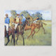 A fine art postcard with the pastel, Race Horses (c. 1873), by the French Impressionist artist Edgar Degas (1834-1917). A portrait of jockeys riding thoroughbreds in a field before the start of the race.